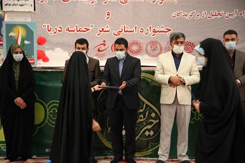 در آیین اختتامیه دومین فراخوان استانی شعر دفاع مقدس "حماسه دریا" که در حسینیه ثارالله بوشهر برگزار شد، از برگزیدگان این فراخوان تقدیر شد.
