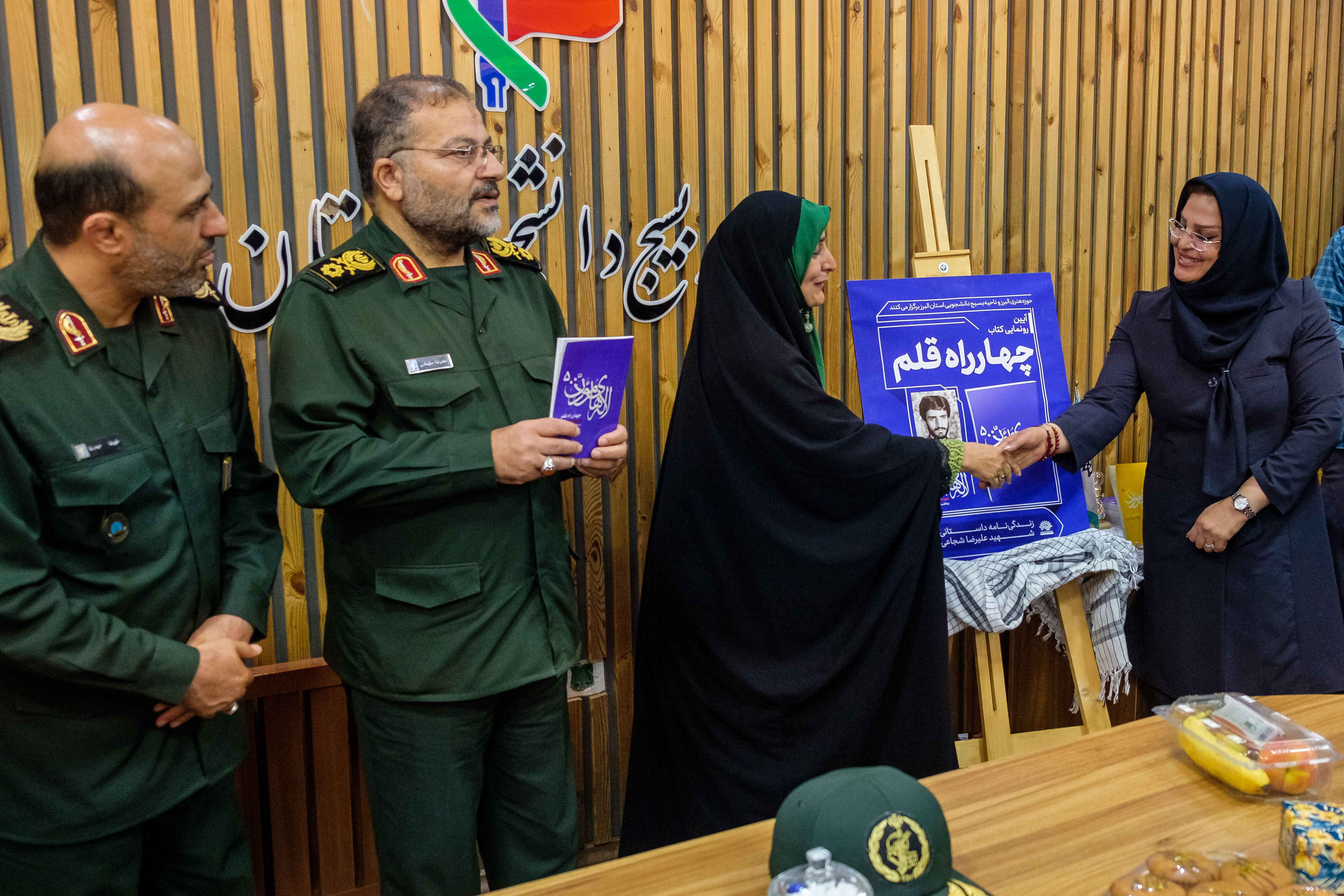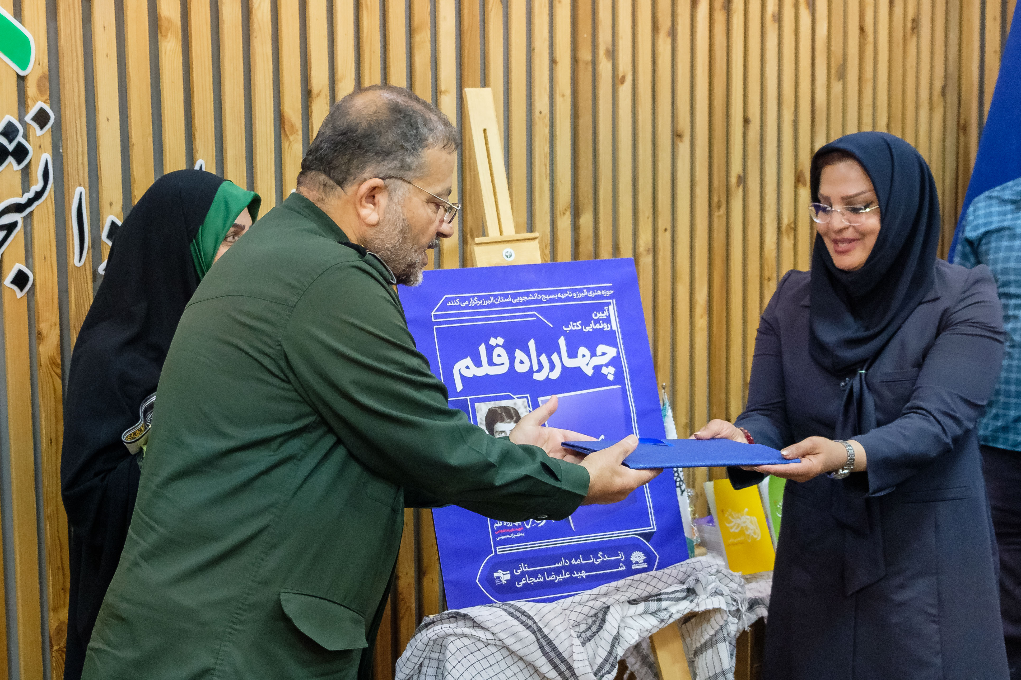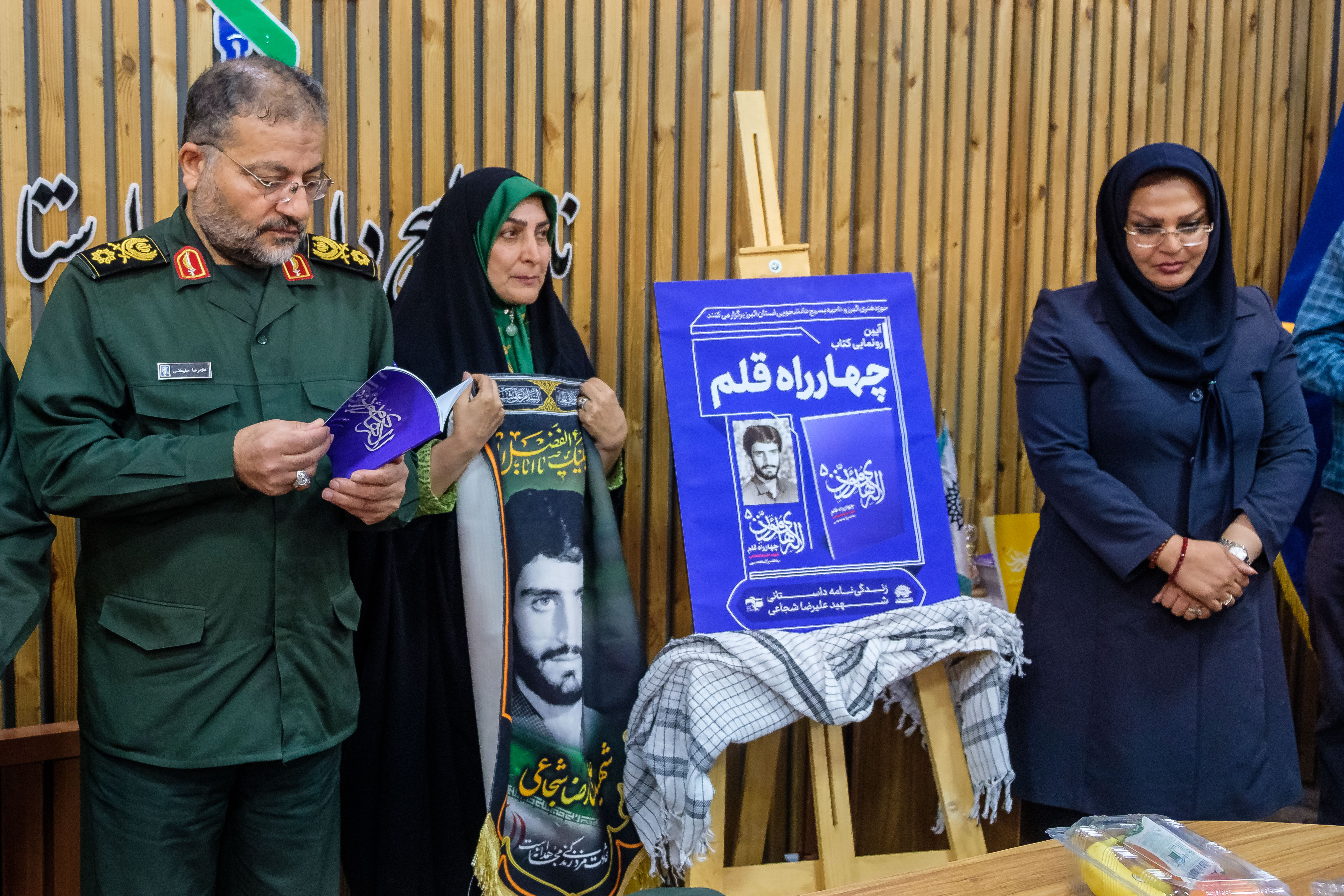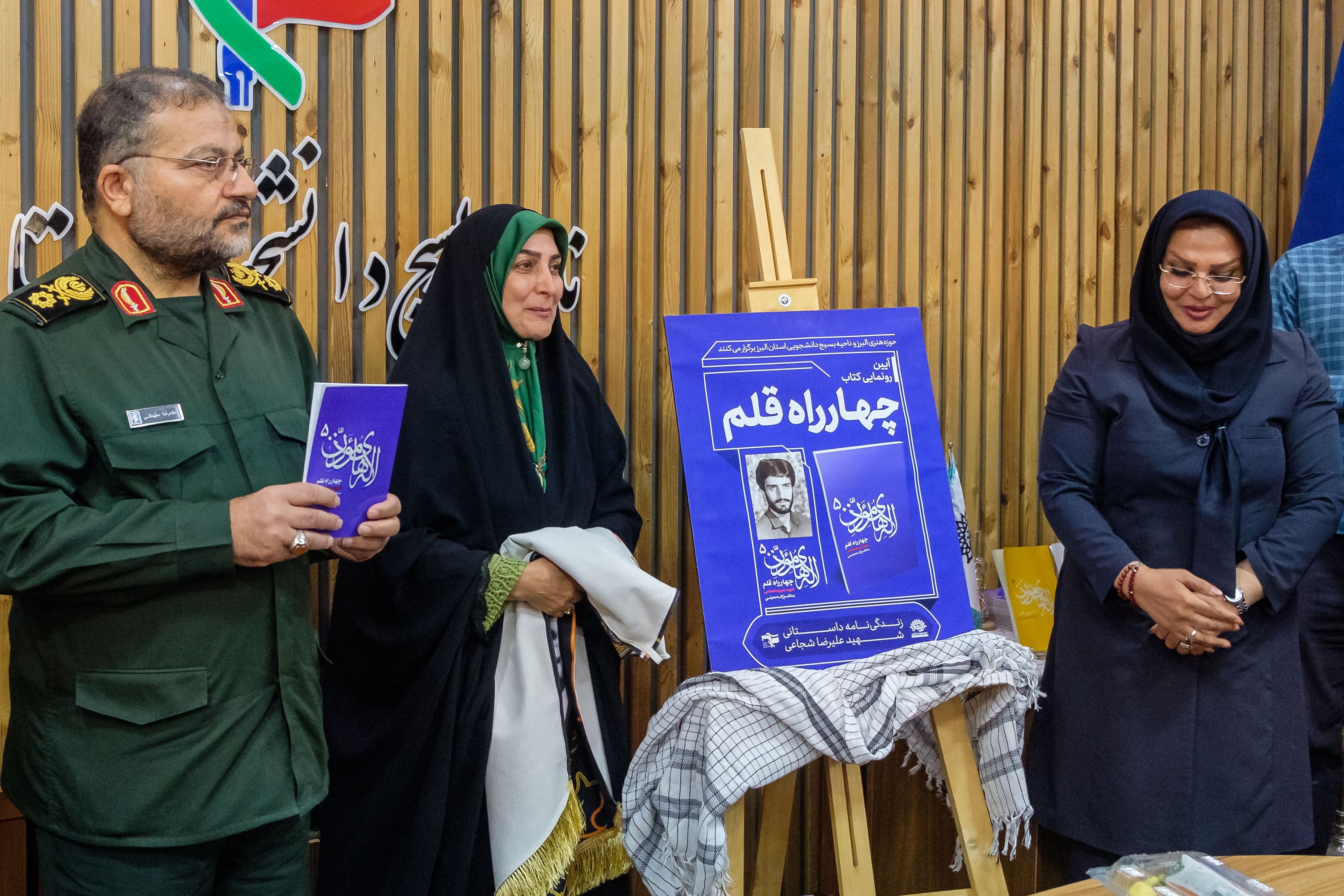 تألیف و نگارش این کتاب در سال 1398 توسط ژاله معینی، از نویسندگان حوزه تاریخ شفاهی، دفاع مقدس و داستان که حدود 10 سال است با حوزه هنری استان البرز همکاری می کند، آغاز شد و در سال 1399 به پایان رسید. کتاب چهارراه قلم در 88 صفحه به همراه تصاویر مربوطه، با حمایت ناحیه بسیج دانشجویی و حوزه هنری استان البرز و توسط انتشارات رهام اندیشه به چاپ رسید.