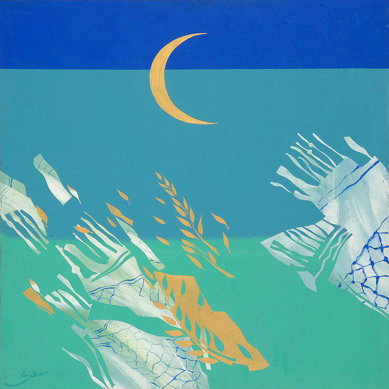 فرم، فضا، رنگ و تمام عناصر بصری در ساختن تصویر به کار گرفته میشوند که حاصل آن رسیدن به معناست. زیبایی و نور دو عامل اصلی درنقاشی ما هستند که در ایجاد فضای معنوی کارکرد مهمی دارند. در این کار تمام عناصر در کمترین شکل و حضور به کار رفته و به عبارتی جنبه مینیمالیستی یافته است. صورتهای عناصر در حداقل خود هستند و لیکن جنبه سمبلیک دارند؛ مانند چفیه و شاخه زیتون و حلال ماه که هریک دارای معنای خاص خود هستند.