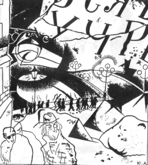 یوگنی زامیتین در مصاحبه خود در Synthetism 1922 می نویسد: [اننکوف] آگاهی عمیقی از عجله و پویایی فوق العاده ای از دوران ما دارد. حس او از زمان به سوی صدم ثانیه می رسد. - مشخصه Synthetism - دادن تنها جوهر مصنوعی چیزها.