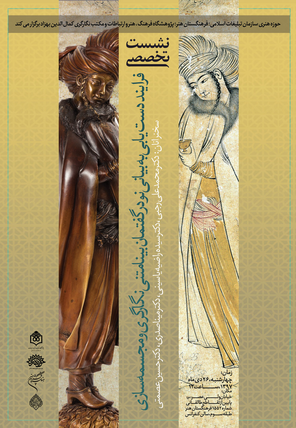 این نشست ساعت 14 چهارشنبه 26 دیماه در سالن کنفرانس فرهنگستان هنر به همت حوزه هنری و با مشارکت فرهنگستان هنر، مکتب نگارگری کمالالدین بهزاد و پژوهشگاه فرهنگ، هنر و ارتباطات برگزار میشود.