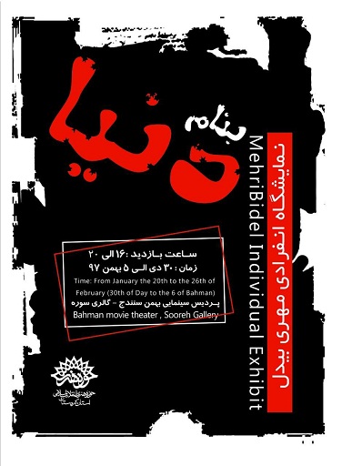 اولین نمایشگاه انفرادی تایپوگرافی آثار هنرمند جوان سنندجی مهری بیدل با عنوان ‌«به نام دنیا» در گالری سوره پردیس سینمایی بهمن سنندج در معرض نمایش علاقه‌مندان قرار می‌گیرد.